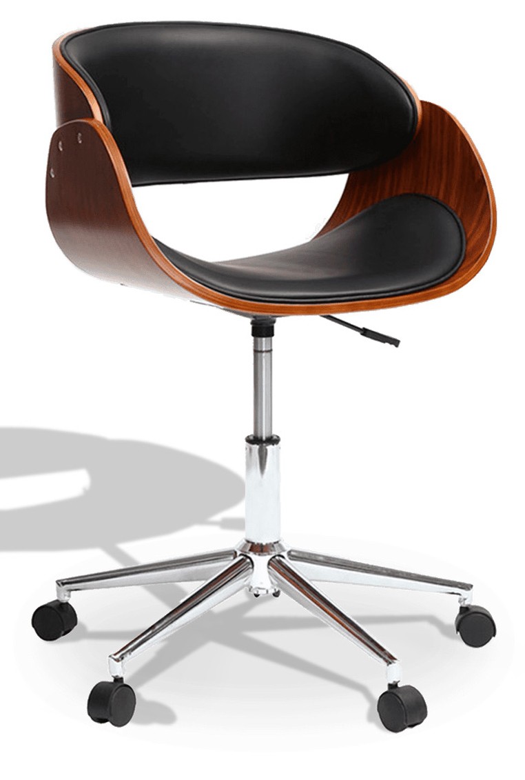 The Burrow Office Chair in Walnut Wood and Leatherette Cushion is a chair that, in addition to being functional, has an original and elegant design.