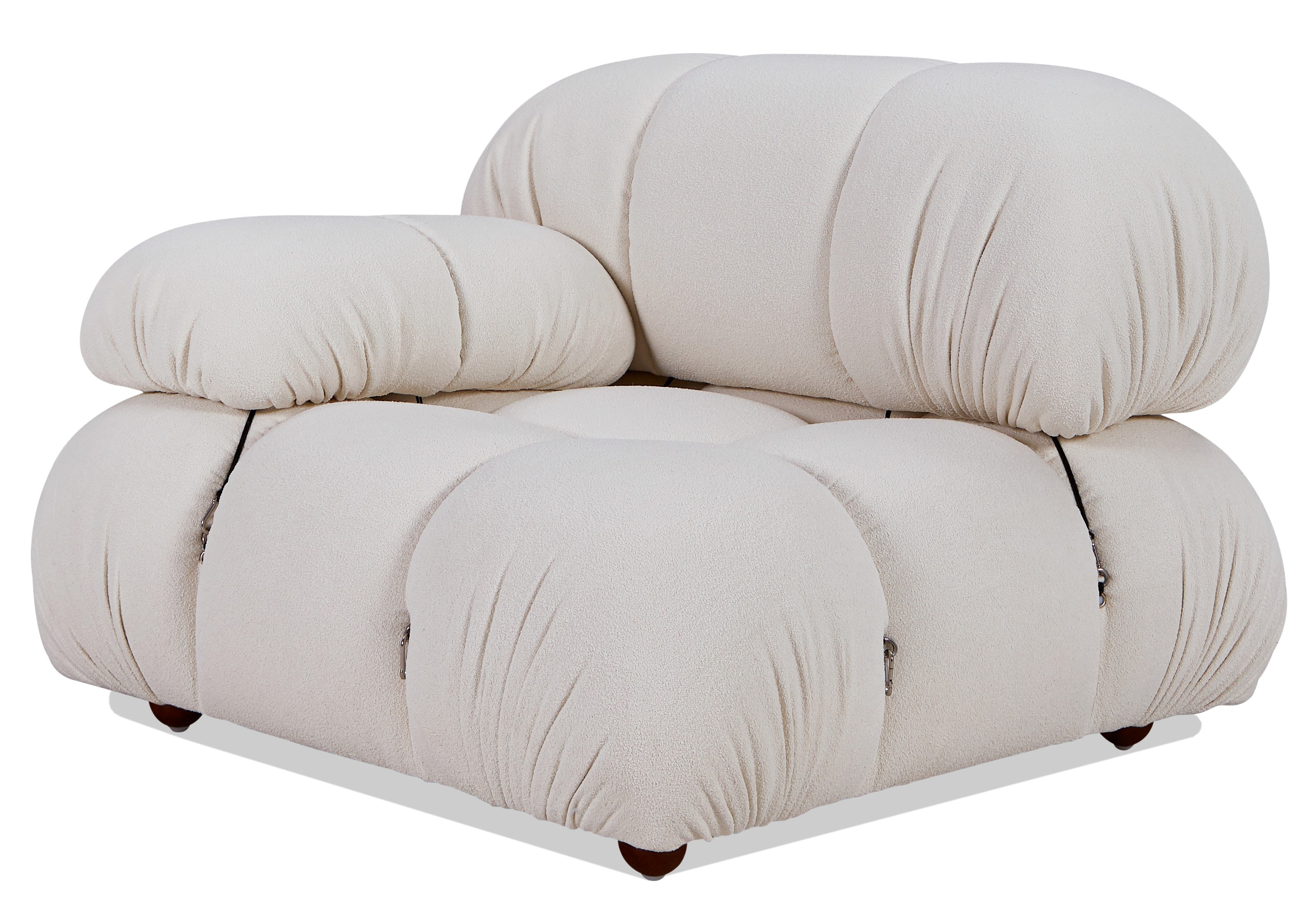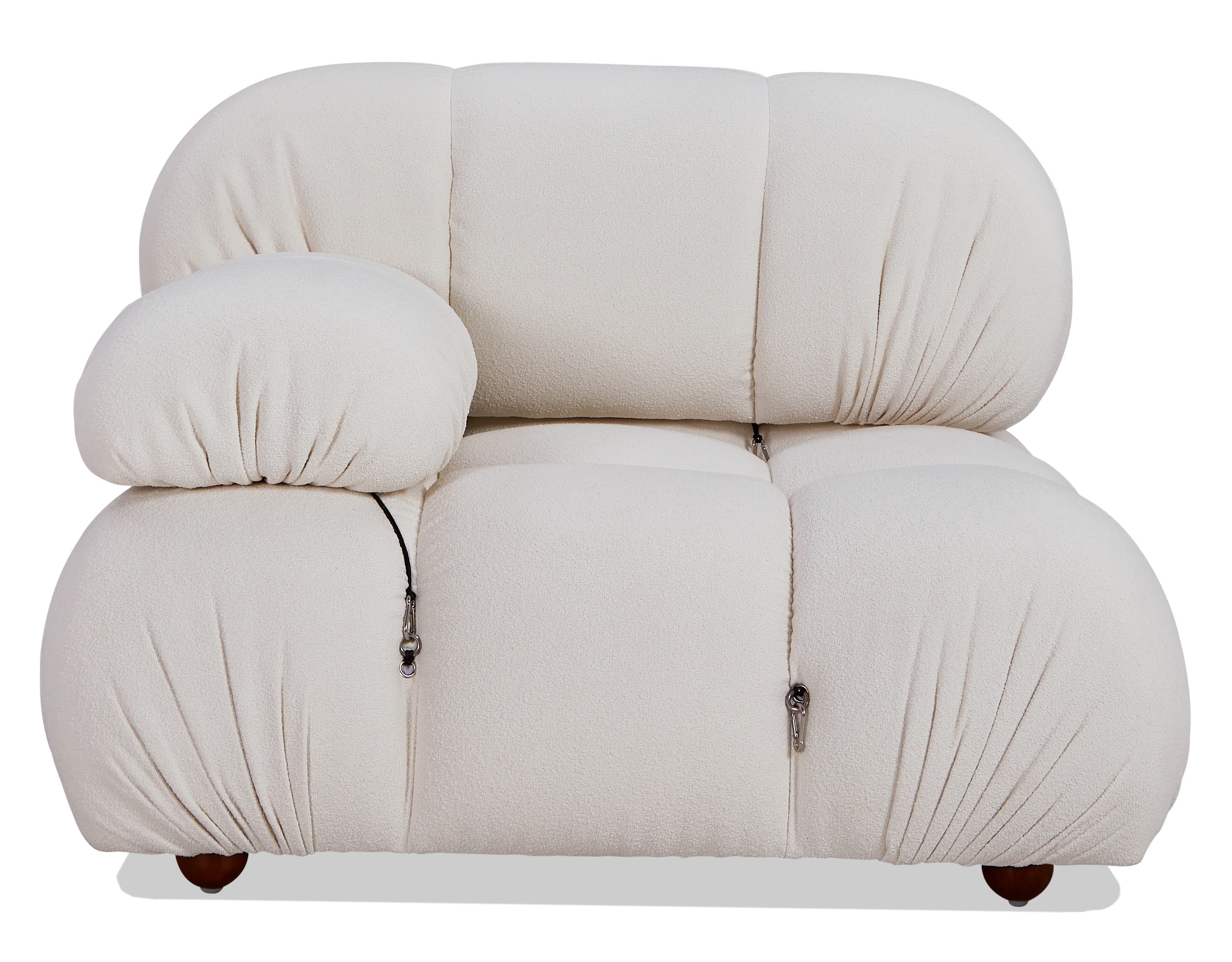 Laurel sofa module with right armrest upholstered in bouclé