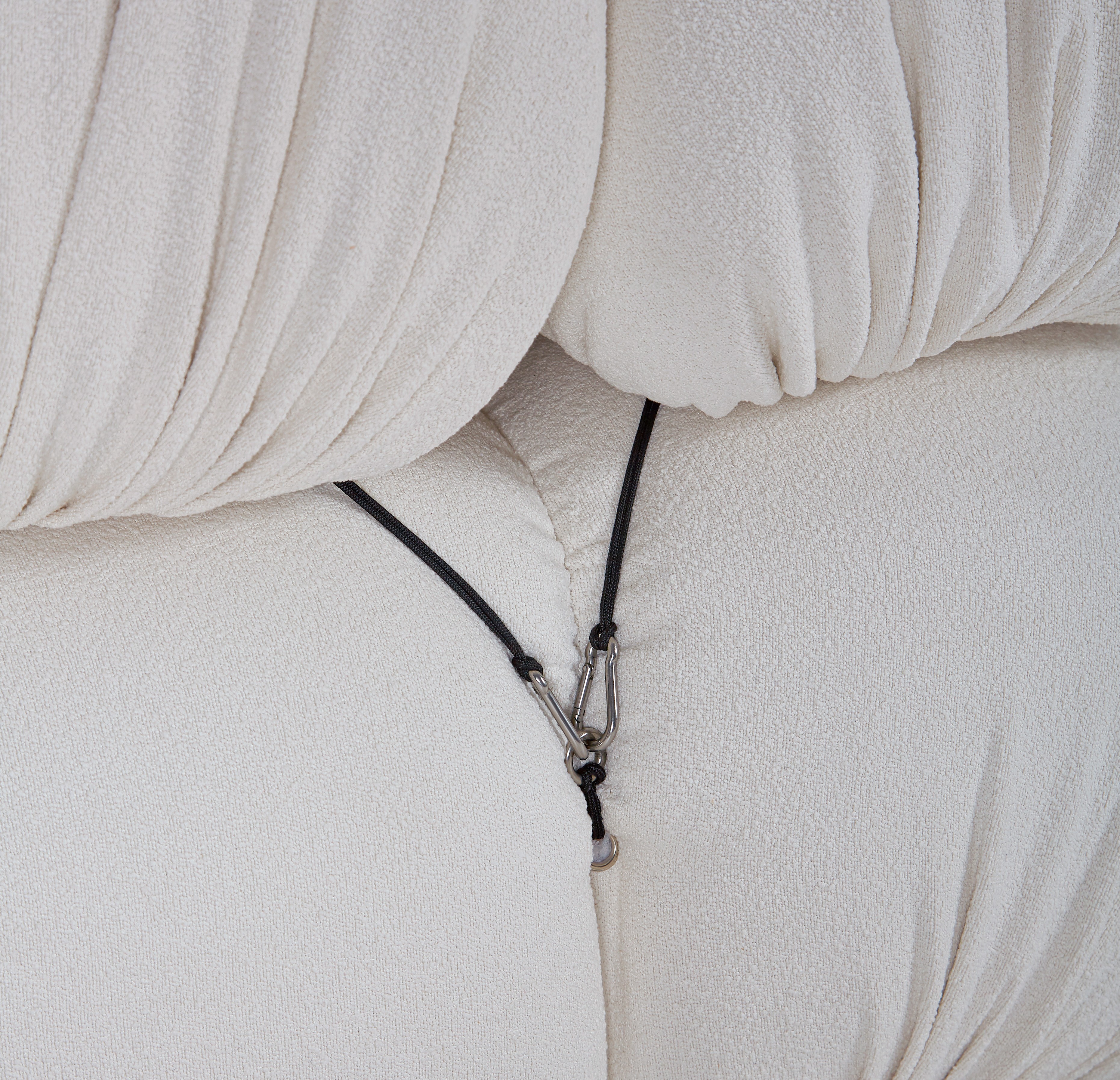 The bouclé upholstery, made with high-quality materials, gives the Laurel sofa a soft and luxurious texture. The technology of bouclé is recognized for its resistance and durability, which guarantees the quality of this sofa at all times. In addition, its solid structure and its padded cushions offer exceptional support for an incomparable rest experience.