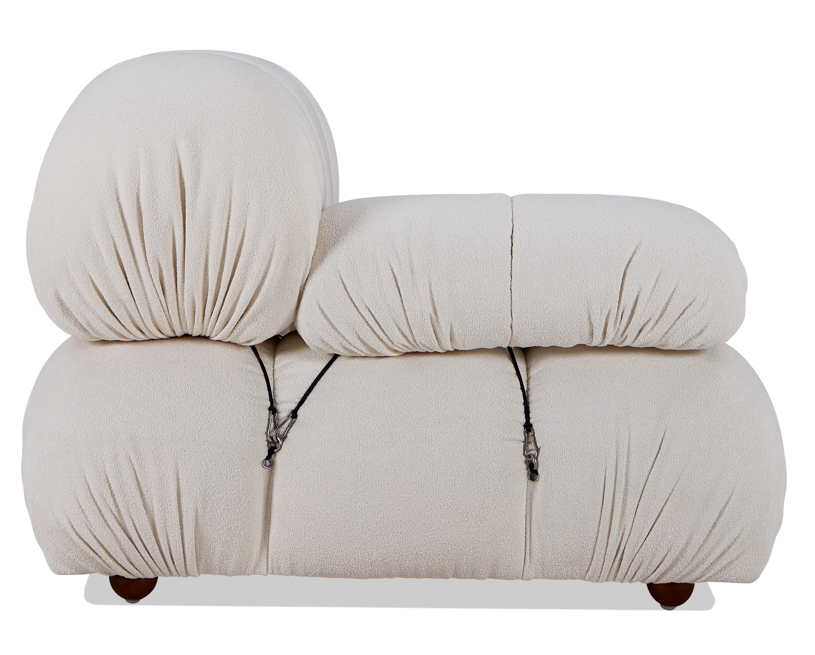 The bouclé upholstery, made with high-quality materials, gives the Laurel sofa a soft and luxurious texture. The technology of bouclé is recognized for its resistance and durability, which guarantees the quality of this sofa at all times. In addition, its solid structure and its padded cushions offer exceptional support for an incomparable rest experience.