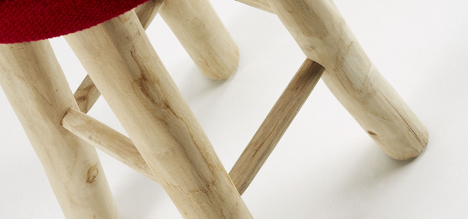 This design stool inspired by Bosch retains all its originality with its unique design style. It is composed of teak branch legs and a knitted seat. It is very easy to clean with a damp cloth.