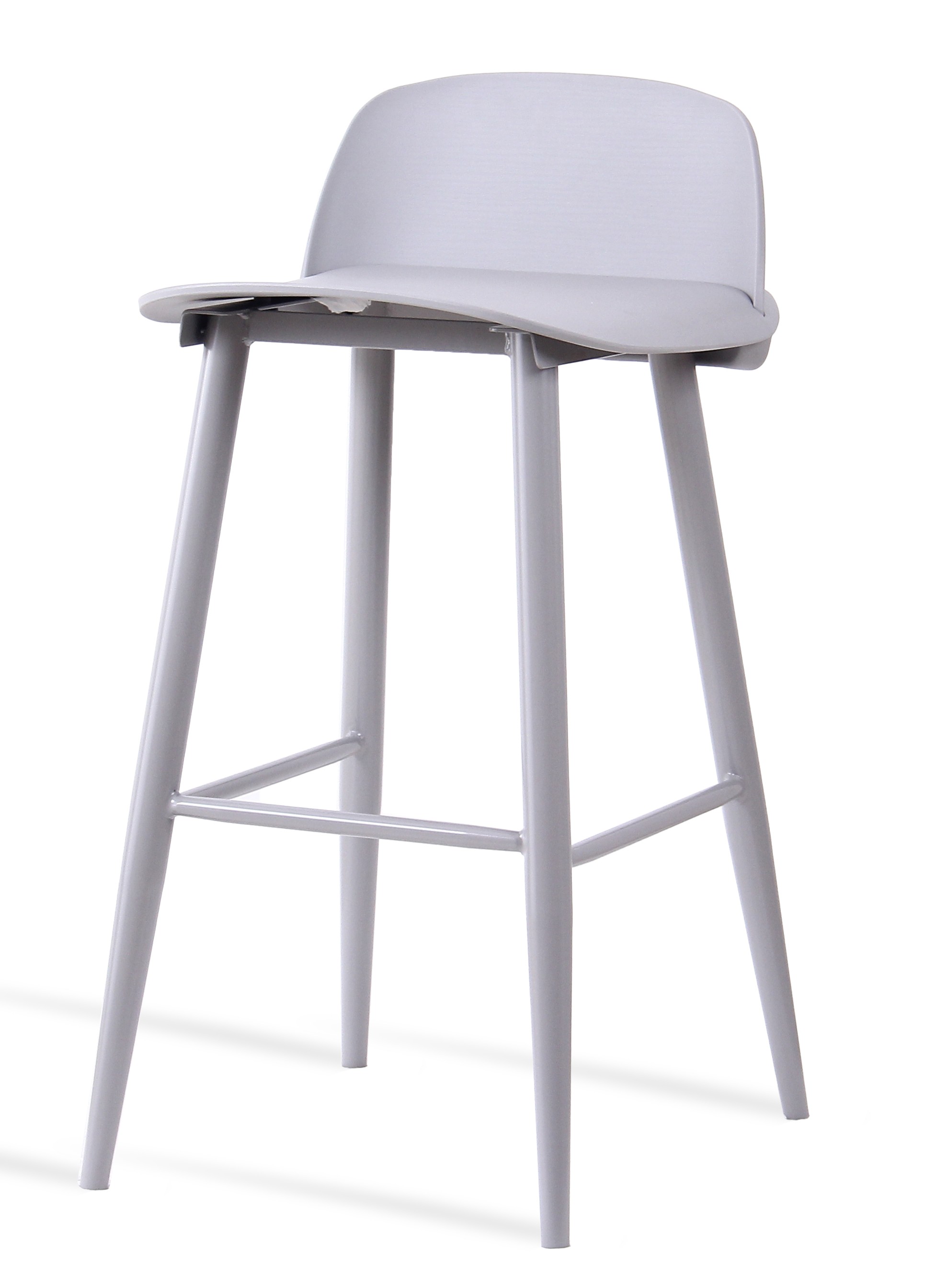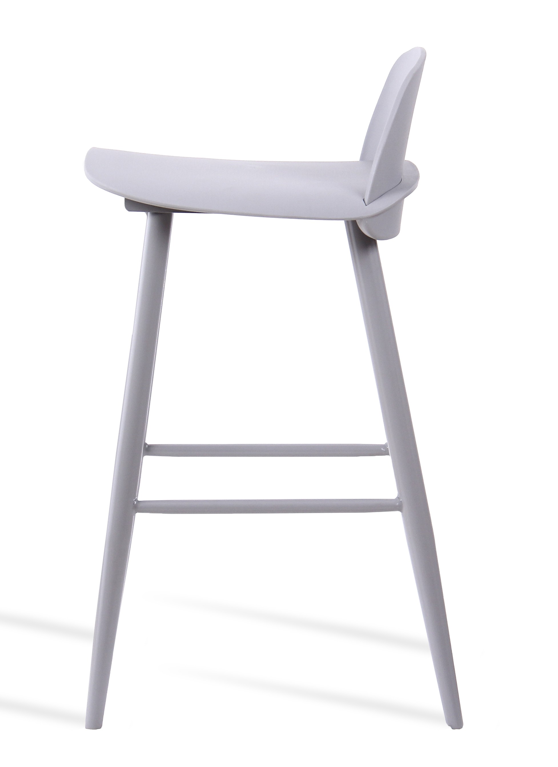 It is a stool with steel legs and a polypropylene plastic seat, with a backrest, to be able to sit comfortably while having a drink.