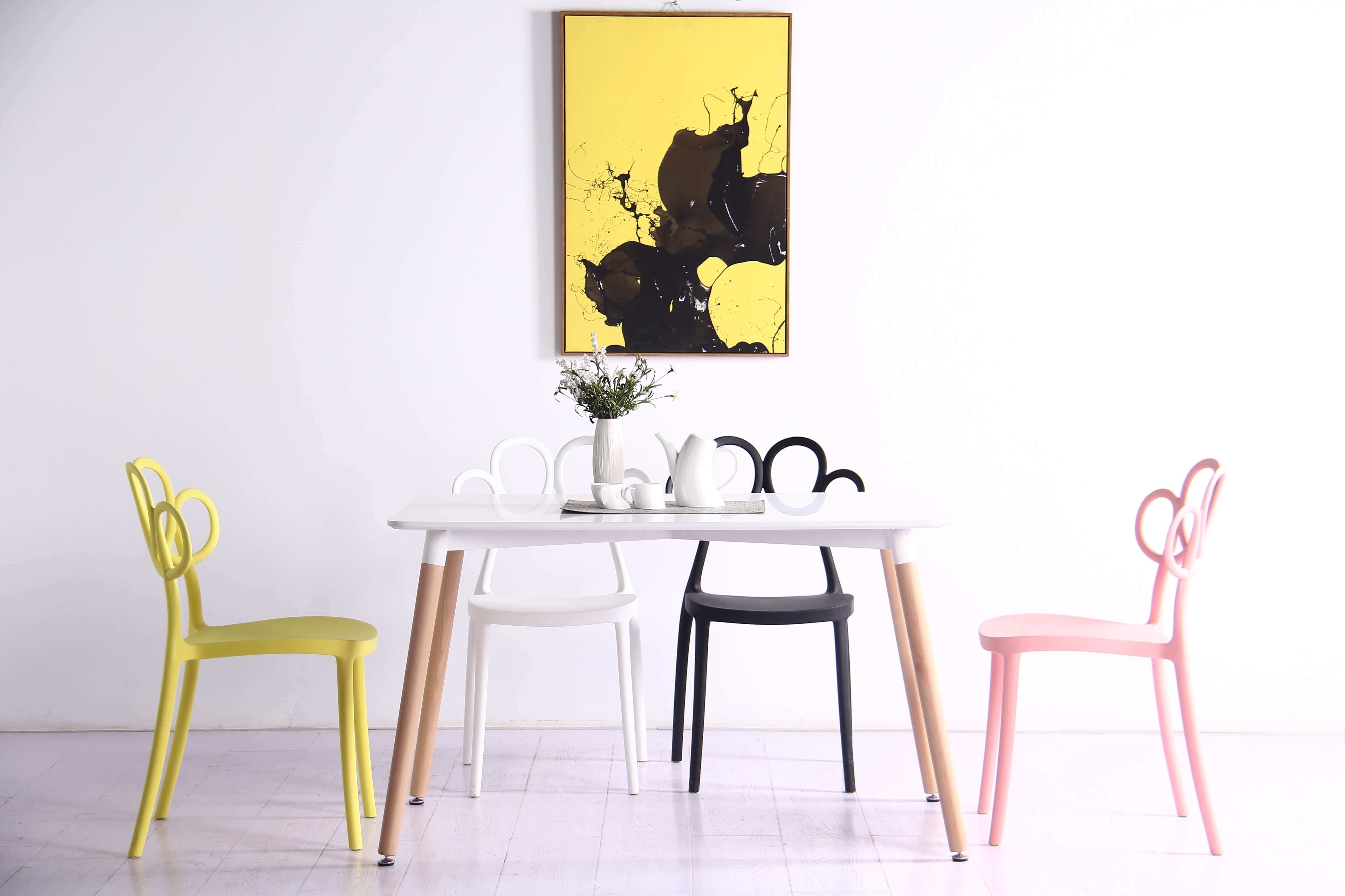 This dining table is made of Lacquered MDF wood, and the steel legs have a Beech Wood effect, great for Minimalist, Nordic styles... Because of its simplicity and warmth.