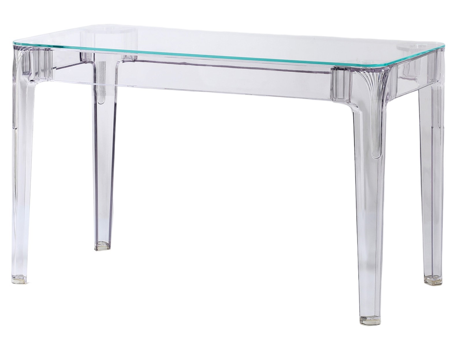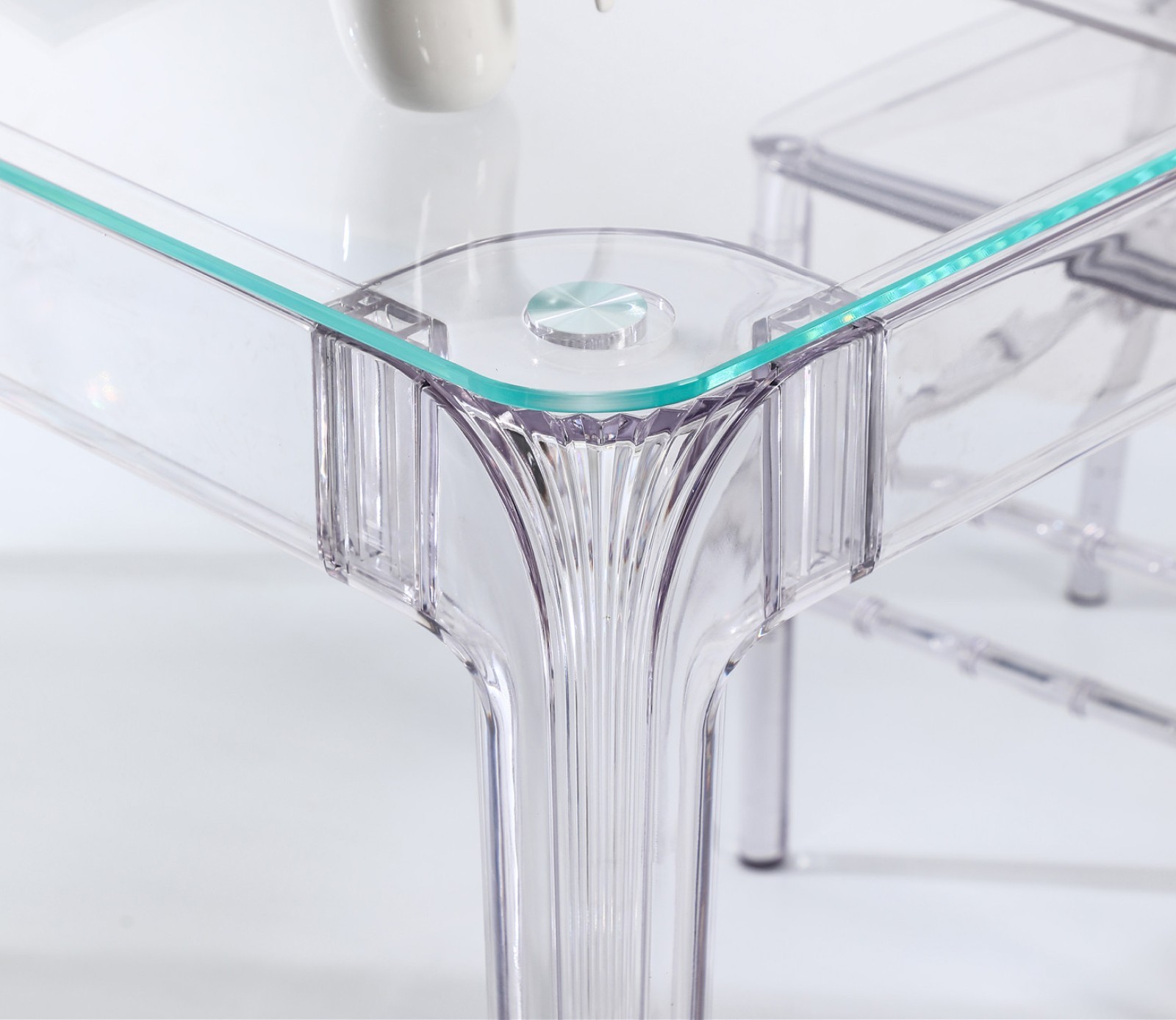 The Ghost 120 cm table is the ideal complement to the Felipe Ghost chairs. Like the chairs, this table is made of transparent polycarbonate plastic, which gives it a delicate and elegant appearance. Despite its light appearance, the Ghost table is surprisingly strong and durable, thanks to its tempered glass top, making it ideal for use both indoors and outdoors.