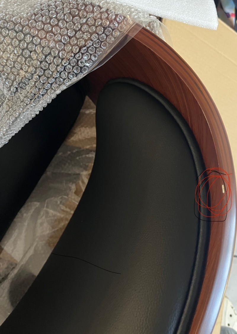 <li>Assento e encosto estofados em imitação de couro.</li>