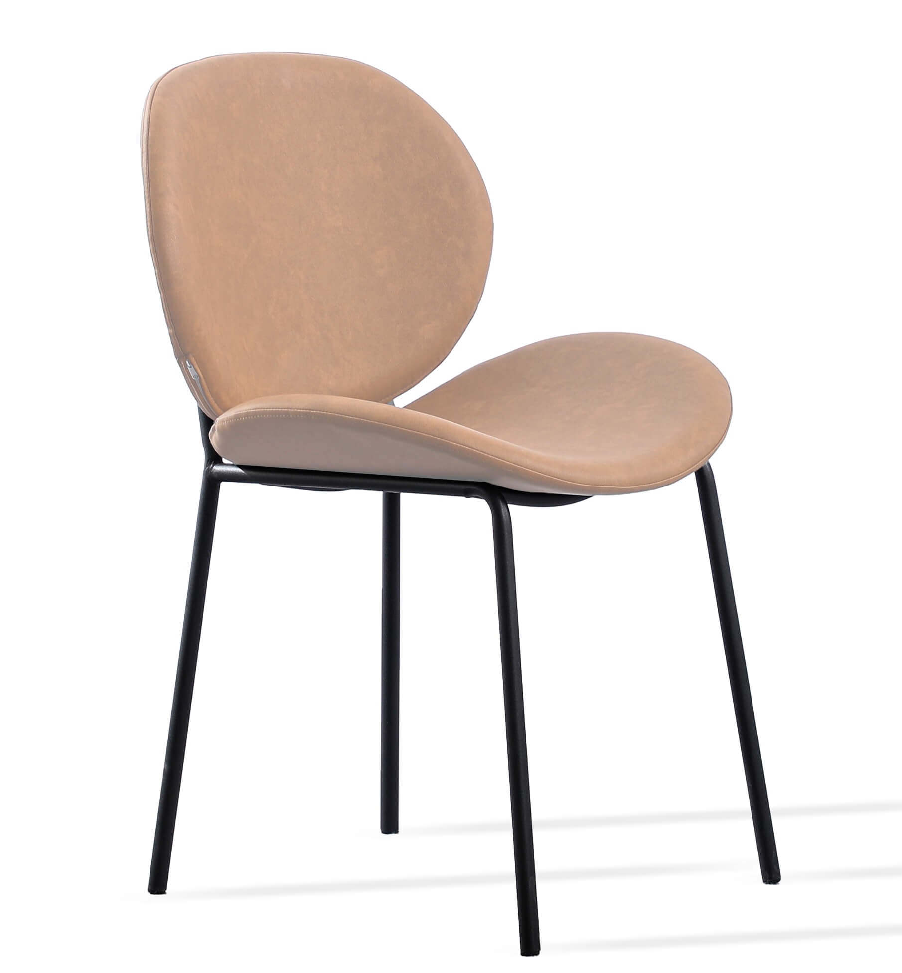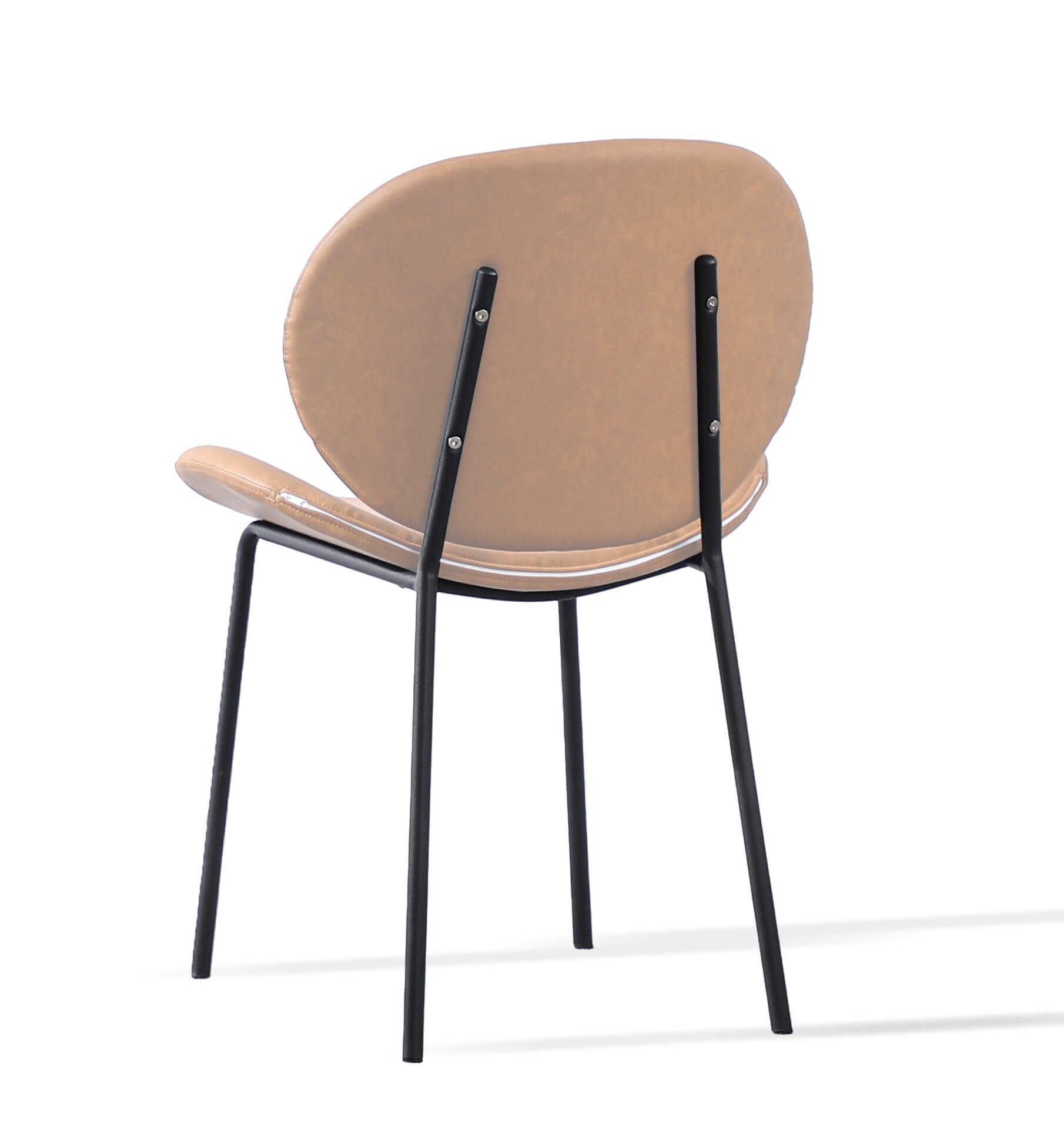 Esta cadeira de jantar é estofada em couro sintético, para oferecer todas as vantagens do couro sintético. O couro sintético dá uma sensação de qualidade e classe.É muito resistente e fácil de limpar, assim como o aço usado nas pernas.