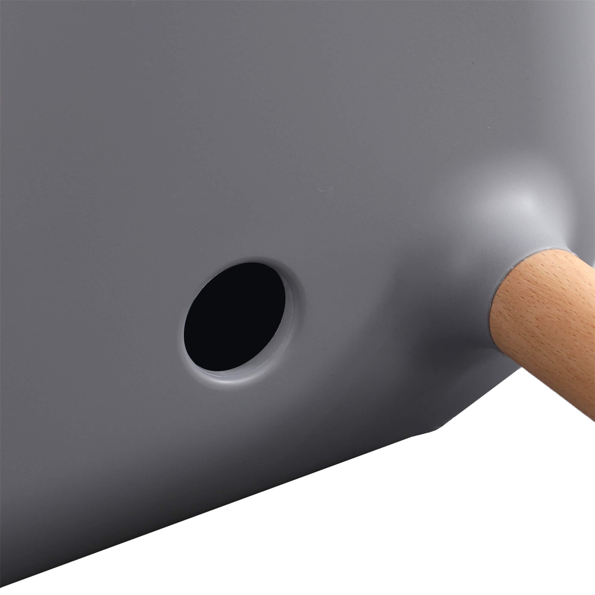É feito de Plástico de Polipropileno e Madeira de Faia, por isso é muito fácil de manter e limpar. Além disso, é resistente e durável. Por ser uma cor neutra, fica fácil você combiná-la com tudo o que quiser.
