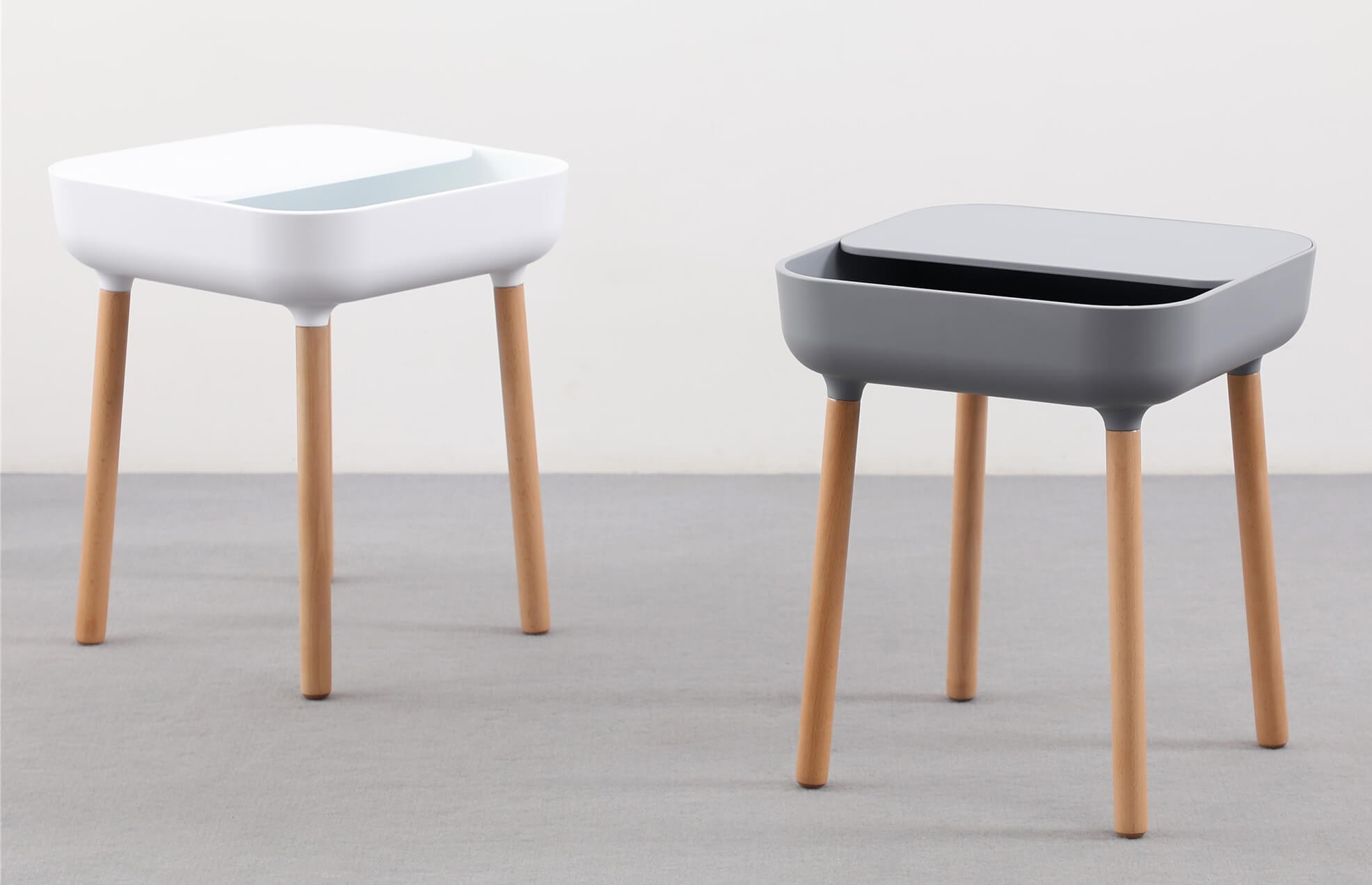 - Mesa Lateral em Plástico Polipropileno e Madeira de Faia.