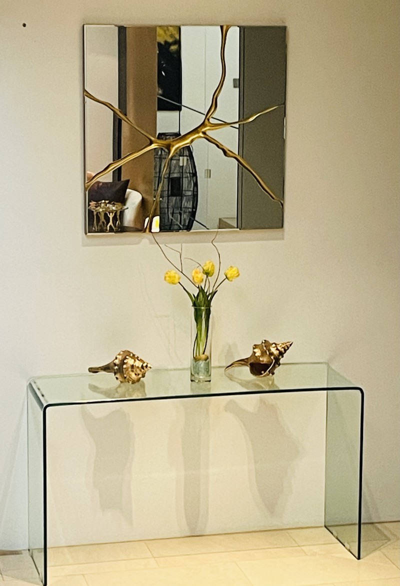 A Mesa de Consola Ice é sinónimo de elegância minimalista e sofisticação intemporal. Fabricada inteiramente em vidro temperado de 12 mm de espessura, esta mesa de consola transparente proporciona amplitude visual e luminosidade, tornando-a a peça perfeita para um hall de entrada moderno, uma sala de estar de design ou mesmo como apoio em espaços comerciais exclusivos.