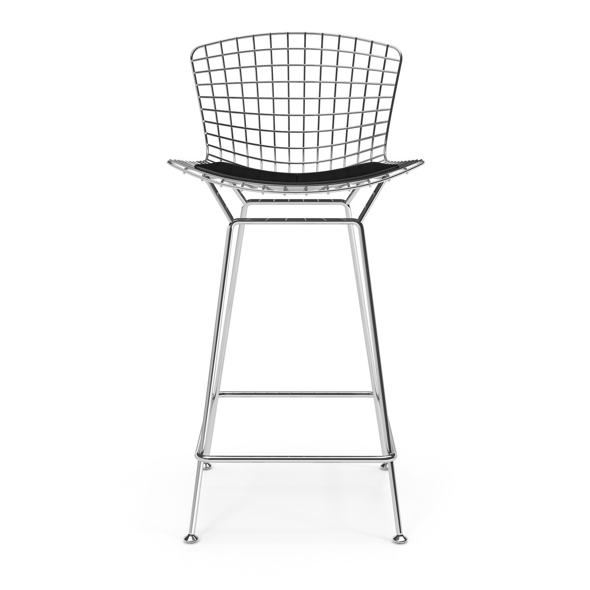 <p>- Inspirado no famoso banco de design Bertoia.<br />- Inspirado no design de Harry Bertoia<br />- Estrutura em aço cromado.<br />- Almofada do assento em couro sintético branco ou preto.<br />- Cadeiras correspondentes disponíveis.</p>